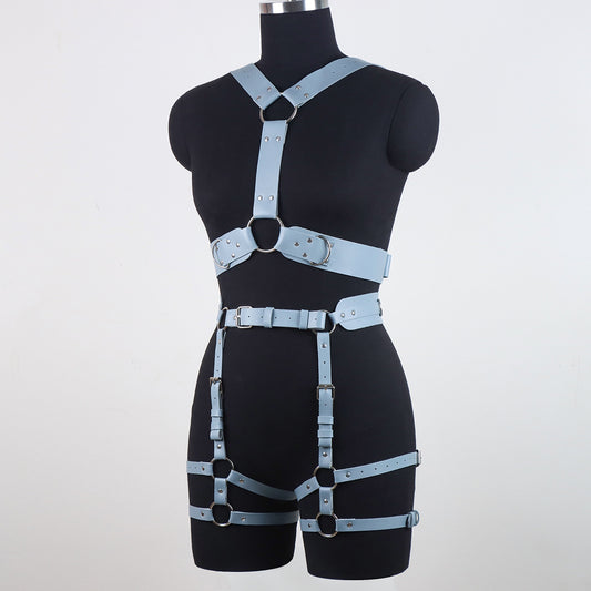 Blue Bondage Body Harness Set & Detachable Cuffs