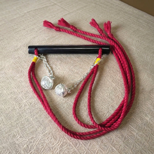 Authentic Japanese Wood Gag with Red Jute Rope & Sensory Bells