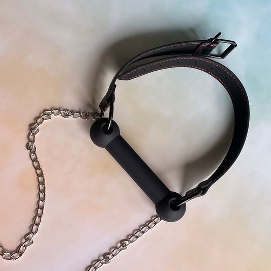 Silicone Dog Bone Mouth Gag with Chain Nipple Clamps