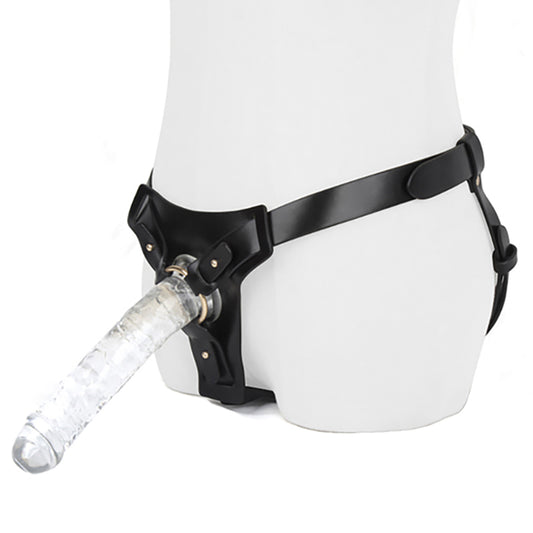 Lesbian Pants with Clear Dildo Black Vegan Leather Strap On Harness
