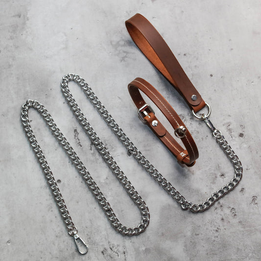 Fog Wax Veg-Tanned Leather Collar/Choker with Leash