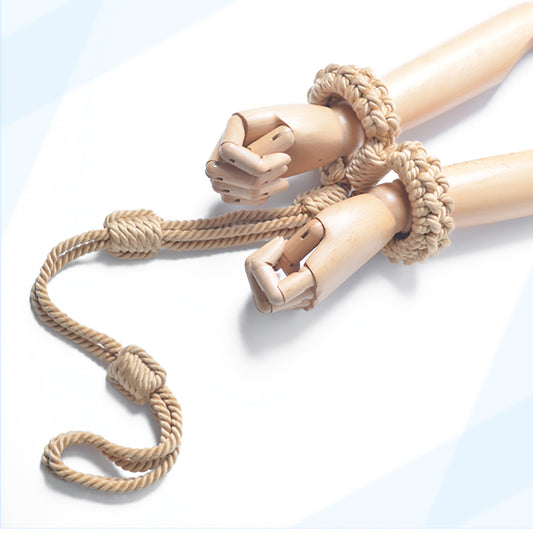 Soft Cotton Rope Bondage Wrist Cuffs with Leash Beige