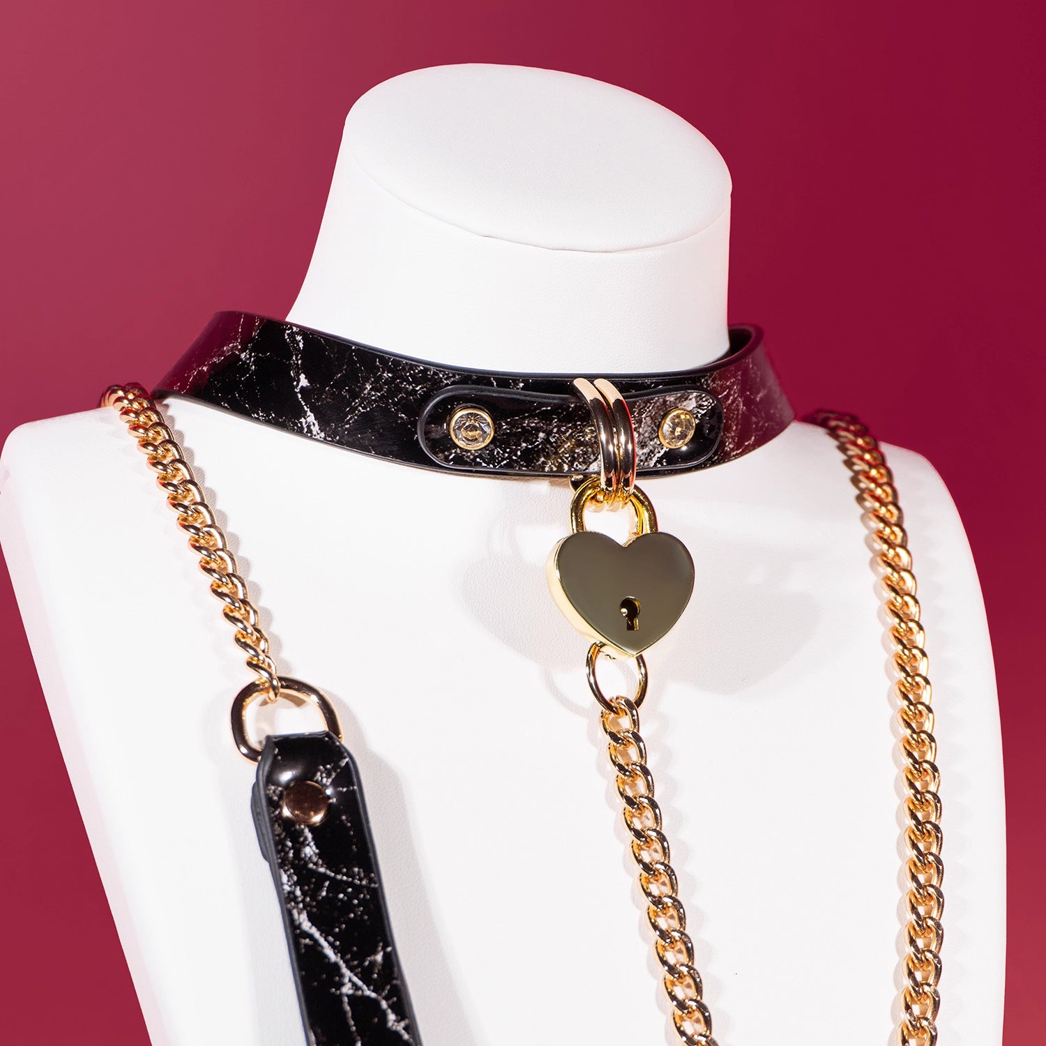 Heart-Shaped Lock Charm: The metal heart lock at the center adds a playful and symbolic touch of ownership, love, and submission.