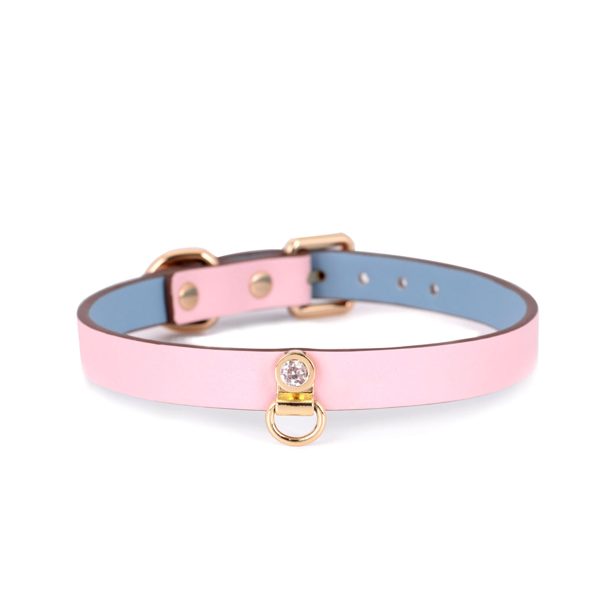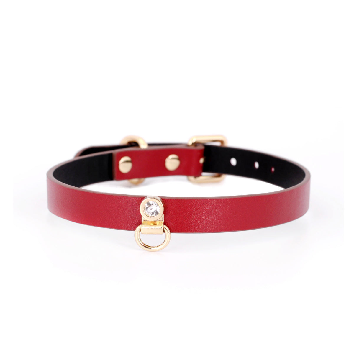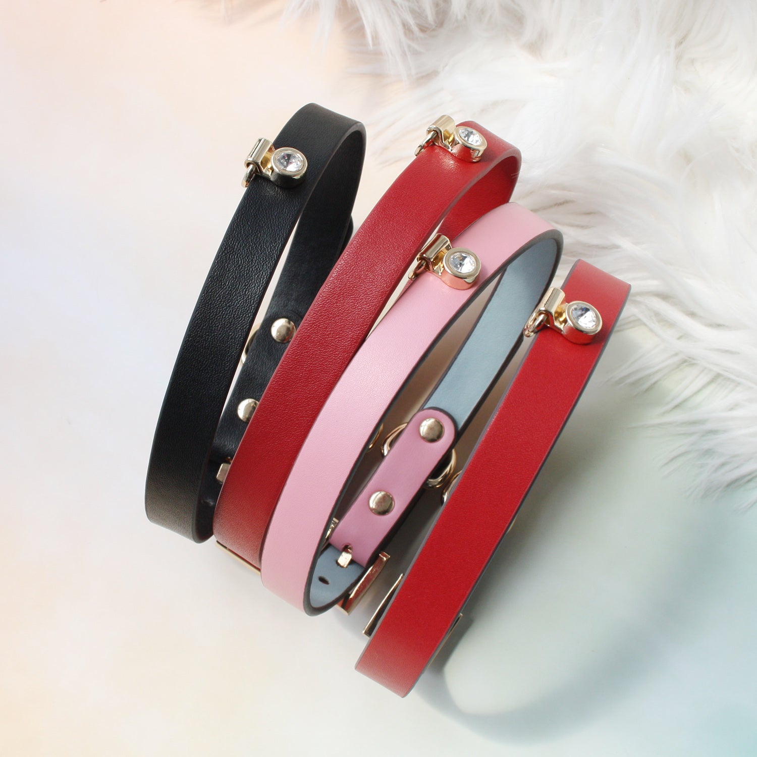Handmade Shining Stone BDSM Leather Bondage Choker with Leash 4-colors