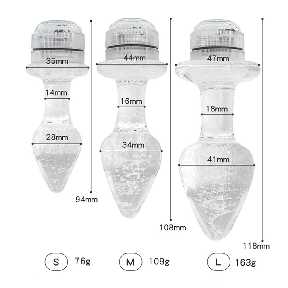 Vibrant LED Light Up Glass Butt Plug with Remote Control S/M/L